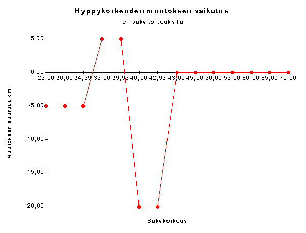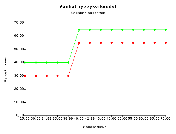 Muutosten vaikutusMuutokseen suhtautuu helposti melko pinnallisesti, mutta säkäryhmä- ja hyppykorkeusmuutos vaikuttavat hyvin moniin asioihin. Toiset vaikutukset ovat positiivisia ja toiset negatiivisia. On hyvä muistaa myös, että hyppykorkeus ei ollut ainoa muutos säännöissä vaikkakin ehkä kaikkein merkittävin.Muutosten tavoitteet Sääntömuutosmenettelyssä on tavalliselle harrastajalle jäänyt ainakin osittain epäselväksi sääntömuutokselle asetetut tavoitteet. Toivottavaa olisikin, että tulevaisuudessa käytäisiin etukäteen syvällisempää keskustelua laajemmassa piirissä tavoitteista ja päämääristä ja pyrittäisiin sitten laatimaan sääntömuutokset vastaamaan näitä tavoitteita. Tavoitteiden asettelussa tulisi myös koko harrastajakentälle antaa mahdollisuus tuoda oma näkökulmansa esille. Esteturvallisuus Sääntökirjan sivulla 11 mainitaan: ŽEsteiden tulee olla turvallisia koiralleŽ. Turvallisuus voidaan näkemyksemme mukaan jakaa välittömään turvallisuuteen ja vaikutukseltaan pidempiaikaiseen turvallisuuteen eli siis lähinnä terveydellisiin vaikutuksiin. Terveydellisten vaikutusten osalta FCI:n sääntömuutoksella todennäköisesti edettiin oikeaan suuntaan koskien suurinta osaa koiria. Välittömän suoritusaikaisen turvallisuuden osalta tehtiin oikeansuuntaisia, mutta osittain riittämättömiä muutoksia. Kansallisella tasolla tulisikin välittömästi SKL:n toteuttaa paremman välittömän turvallisuuden turvaavia sääntöjä tai ohjeita. Sääntöjen tulisi tietysti täyttää myös kaikki FCI:n kansainvälisten sääntöjen määräykset, mutta olla selvästi tarkempia. Turvallisuuden lisääminen ei voi mitenkään olla ristiriidassa kansainvälisten sääntöjen kanssa, joten tarkistukset ovat hyvin aiheellisia. Esteiden tekniset muutokset Hyppyesteiden tekniset muutokset eivät välttämättä ole kovin suuria. Muutoksen jälkeen kaikissa hyppyesteissä tulee kuitenkin löytyä kannakkeet aiempien korkeuksien (30, 35, 40, 55, 60 ja 65 cm) lisäksi myös 25 cm ja 45 cm hypyille. Jokaiselle säkäryhmälle tulee siis olla kolme vaihtoehtoista hyppykorkeutta. Riman materiaalista on säännöissä suosituksia (ei metallia tai muovia), mutta paksuudesta tai mallista niissä ei sanota mitään. Olisi mielekästä määrätä kansallisesti myös rimalle tarkemmat määritykset. Todennäköisesti turvallisin on pyöreä n. 30 mm halkaisijaltaan oleva puurima. Olisi perusteltua määritellä rimalle myös painorajat. Riman kannakkeet saattavat myös aiheuttaa vaaratilanteita, jos rima on liian syvällä kannakkeen kuopassa tai kannake on muuten liian ahdas eikä rima pääse irtoamaan. Riman tulee päästä putoamaan kohtalaisen, mutta ei liian helposti, jos selvä kosketus tapahtuu. Noin 0,5 cm urasyvyyden voi katsoa hyvin riittävän riman kannattamiseen ja tuulen aiheuttamien putoamisten estämiseen. Rimassa ei saisi olla kulmia, jotka aiheuttavat iskukipua. Oksereissa korkeuseron tulee uusien sääntöjen mukaan olla 15 - 25 cm. Tästä johtuu, että okserin alempia rimoja varten tarvitaan kannakkeet myös 50, 20, 15 ja 10 cm korkeuksille. 5 cm korkeudelle tai maanrajaan tuskin kannattaa enää kannaketta laittaa, ja siksi kansallisesti kannattaisikin määritellä, että okserin alin rima on 10 cm korkeudessa. Muurin osalta käytäntönä on ollut, että yhdistyksillä on ollut yhdet mini- ja yhdet maxi-muurit. Säännöissä on mainittu kuitenkin niille väli, joka todellisuudessa edellyttäisi kullekin säkäryhmälle myös useampia muurinkorkeuksia. Tällainen sääntötulkinnan mahdollisuuskin pitäisi poistaa. Kansallisesti tulisi täsmentää ohjeita niin, että jokaiselle säkäryhmälle määriteltäisiin vain yksi hyppykorkeus nykyisen välin sijaan. Hyppykorkeuksien tulisi olla mineillä 30 cm, mideillä 40 cm ja maxeilla 60 cm. Sääntöjen tulisi sallia vain mittavirhe +/- 1,00 cm Pituushypyn osalta mainitaan hypyn pituusvälit eri säkäryhmissä. Mini (40-50 cm) Midi (70 - 90 cm) ja Maxi (120-150 cm) Esteen osat tulee kasata matalimmasta korkeampaan. Esteiden osien tulisi sääntöjen mukaan olla hieman kaltevia, mutta näin ei nykyisin kaikissa estesarjoissa ole. Käytännössä tämä ei ole aiheuttanut mitään ongelmia, mutta onko mielekästä säännöissä mainita esteelle erikseen jokin ominaisuus, jos sitä ei kuitenkaan käytännössä edellytetä. Olisi siis mielekästä joko poistaa maininta tai tehdä esteet sääntöjen mukaisiksi. Eri säkäryhmille tulisi myös määritellä korkeimman osan korkeus erikseen. Korkein osahan on nykysäännöissä määritelty 28 cm korkuiseksi. Kun minien alin hyppykorkeus on 25 cm, ei voida pitää perusteltuna, että pituushypyn korkein osa on korkeampi kuin alin normaalihyppy. Puomin ja A-esteen nousulistat tulisi uusien sääntöjen mukaan jatkossa olla noin 20 mm leveitä ja kulmistaan pyöristettyjä. Listan korkeus olisi noin 5-10 mm ja etäisyys toisistaan noin 25 cm. Listat tulee kiinnittää niin, että ensimmäisenä kiinnitetään lista, joka on n. 10 cm kontaktipinnan ylärajasta ja sen jälkeen lisätä listoja 25 cm välein niin pitkälle molempiin suuntiin kuin mahdollista. Turvallisuuden vuoksi tulisi vaatia, että listat myös hiotaan hyvin ja varmistetaan, että kiinnitysruuvit uppoavat riittävän syvälle, eivätkä aiheuta vaaraa. Puomi on este, jonka vakaus on myöskin erittäin tärkeä. Siihen ei säännöissä ole kiinnitetty lainkaan huomiota, paitsi yleismaininnalla, että esteiden tulee olla turvalliset. Valitettavasti joskus kisapaikoilla on aivan liian huteria rakennelmia. Turha huojunta aiheuttaa koulutusongelmia ja asettaa myös kevyemmät ja raskaammat koirat eriarvoiseen asemaan. Todellisia vaaratilanteitakin on esiintynyt. Kansallisesti myöskin puomin vakausominaisuuksiin tulisi säännöissä kiinnittää riittävästi huomiota. Esimerkiksi nopeasti etenevä leonbergi aiheuttaa massallaan uskomattomia voimia, jotka kohdistuvat puomin 
