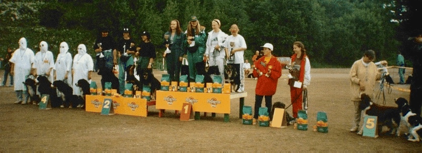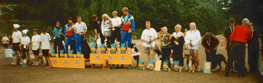 Ykköspallille kuten kuuluukin. Vasemmalta Agi-rotu -97:n tuomarit